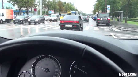 Молодой человек выехал на дорогостоящей машине вылавливать телок, которые готовы с ним прокатиться навстречу приключениям. Это довольно легко, ведь она премиум класса и даже не важно как выглядит ее молодой хозяин, главное показаться окружающим в супер дорогом кожаном интерьере. Прохожая с тортиком по пасмурной погоде шла к питерской подруге домой, когда к ней подкатил чувак с предложением подвезти. Он много говорил, смешил, развлекал и в итоге отвез не совсем по адресу, сумев развести на потрахаться. Шлюшка уже сама с самого начала делала знаки сексуального внимания ножками, можно было даже чуть более тупее, не настолько уж он не понимает намеки.