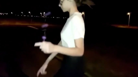 Симпатичная молодка в очках, чулках и юбочке посреди ночи пошла на парковку чтобы малость пошалить. Ее сопровождает оператор, у которого включен фонарик, иначе ничего не было бы видно даже под светящими над головой фонарями. Место абсолютно безлюдное, так тянка, сидя бордюре, беспрепятственно засунула анальные бусы себе в задницу, вытягивая шарики на веревочке за хвостик. Узенькая попочка нимфоманки с каждым последующим кругляшом растягивается все сильнее, принося улыбчивой хозяйке интересное удовольствие, которое не получить от ласки вагины.