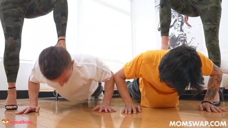 Друзья сообщили родителям о том, что собираются пойти вместе служить в армию. Отцам особо нет разницы, а вот обе мамки забеспокоились о будущем молодых пацанов. Переговорив о надвигающейся трагедии, знакомые друг с другом женщины договорились устроить что-то типа небольшой учебки для мальчиков на следующий день, разбудив их для совместной тренировки на дому. Ребята справились на отлично, а у подруг не было придумано другого варианта уговорить остаться дома. Тогда они поменялись сыновьями и перетрахались в групповухе вчетвером подумав, будто это может остановить неразумных ребят, но они все равно собираются покинуть отчий дом, так как переиграли в стрелялки на компьютере.