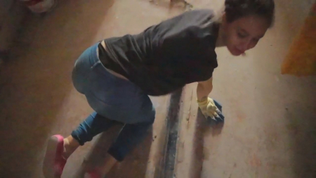 Милая метиска выполнила приказ своего парня встать на колени. На ее руках перчатки, так как они только что занимались ремонтом в доме, поэтому она никак не ожидала, что он включит камеру и начнет снимать минет, который она очень хорошо и глубоко сделала. Сразу после этого молодые ребята перебрались к окну, чтобы было больше света и милочку отымели рачком на выпрямленных ногах, а ее это очень возбуждает, даже настолько, что она сквозь стоны просит трахать ее еще и не сбавлять темп. Подвела девочка только когда ей кончали на язык - соска просто поперхнулась до кашля.