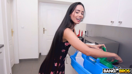 Мужчина ранее не видел принятую на работу домработницу, поэтому с первых секунд постеснялся ей сделать щедрое предложение. Но когда прошло несколько минут и девушка чуть пообвыклась, тот протянул пачку купюр, попросив делать уборку в трусиках. Брюнетка согласилась. После этого колумбийка приняла еще немного долларов, чтобы снять трусики и тут она, делая свою работу, повернула голову на хозяина и увидела как он дрочит свой толстый член. Теперь ей захотелось попробовать на нем прокатиться, все равно состоятельный гражданин уже всю ее облюбовал, теперь настала ее очередь повеселиться.