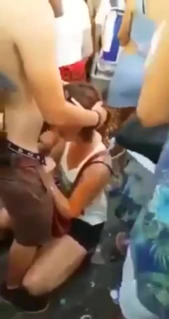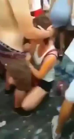 Играет громкая электронная музыка, люди вокруг изображают танцы. Посередине толпы, большая часть из которой составляет женский коллектив, одна из представительниц прекрасного пола делает минет парню сидя перед ним на корточках. Какой-то чувак не постремался включить запись на телефоне, именно благодаря нему мы и можем это лицезреть, а интернет все помнит, даже эти 36 секунд. Но что самое удивительное - вокруг столько народу, но никому нет дела до того, что какая-то блядь так старается публично при всех удовлетворить ртом, а на нее обратил внимание только какой-то чел со смартфоном.