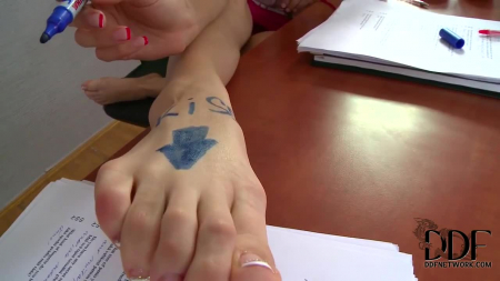 Красивая латиноамериканка оставила уже взрослого парня делать работу над ошибками после уроков. Его она отвлекала красивыми длинными ножками и заметила как тот восторженно смотрит, стоит ей только на секунду отвернуться в сторону доски или окна. Наконец, ее терпение лопнуло и, чтобы процесс пошел чутка получше, брюнетка написала приказ поцеловать пальчики на ступнях и начала двумя классными ножками дрочить твердый хуй ученика, пока он не кончил от сильнейшего возбуждения в ладошку учительнице, попробовавшей слизать остатки с собственных ног. [DDFNetwork] Samia Duarte - Sole Study.