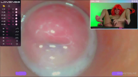 Моделька-экспериментатор Melissa XXS PIE услышала просьбы зрителей трансляции вставить стеклянную трубку с камерой внутрь вагины. Она смазала ее рукой по всей длине и стала неторопливо вводить внутрь, показав себя на весь экран, а потом и крупным планом видео с той самой камеры, что уже находится внутри ее влагалища. Это буквально то, что обычно видит головка члена, пробуривая розовые женские внутренности. Дабы все было как взаправду, малышка взяла для дополнительного кайфа вибратор и от двойного удовольствия вскоре смогла испытать оргазм - трубочкой она дрочила, а вибратор нужен был для клитора снаружи.