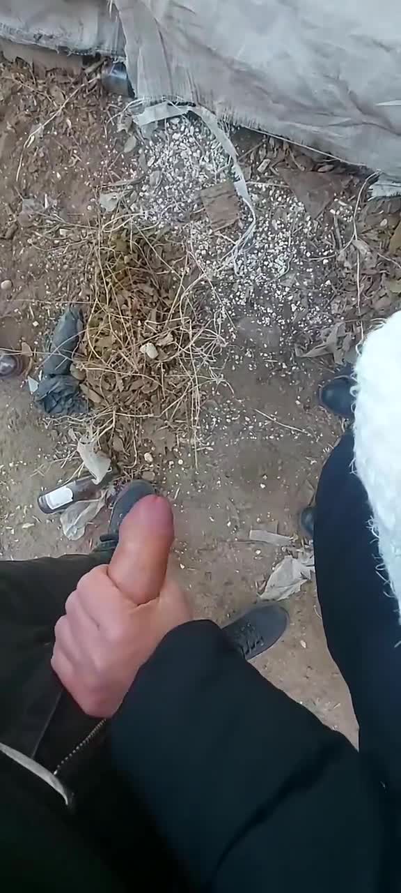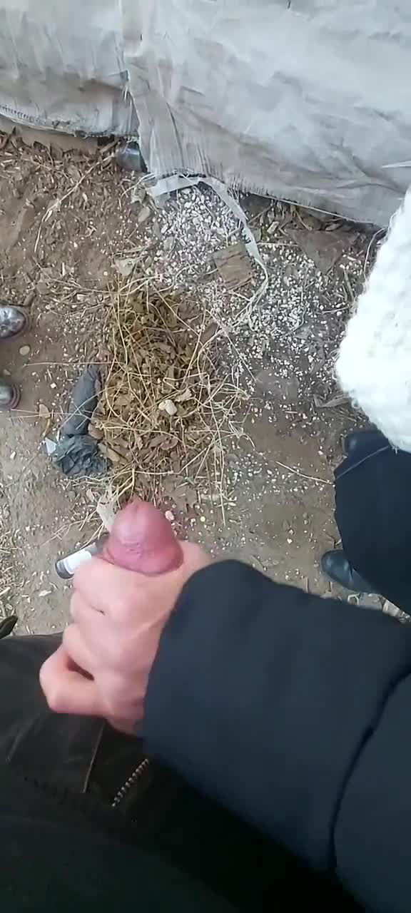 Неизвестно при каких обстоятельствах троица оказалась за какими-то разбомбленными гаражами в холод, но суть в том, что парень дрочил член при двух телочках и предложил кому-нибудь "попробовать". Та что справа с удовольствием взяла его хуй в крепкую руку и стала гонять его шкурку, стоя сбоку. На просьбу вторая не ответила положительно, но сказала, что просто посмотрит. Так продолжалась съемка на телефон несколько минут пока из головки на землю не показала сперма. Девица все сильнее сжимала ствол, легонько подрачивая, будто пыталась выдавить оттуда все без остатка. Молодому человеку очень это понравилось.
