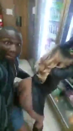 Два извращенца, озверелый негр и его черная подружка, отправились ночью покататься по городу и заскочили в ночной магазин с едой. Проходя мимо кассира они сделали вид, будто пошли выбирать что приобрести, а сами доперлись до дальнего конца продуктовки, где возле холодильника телка оголила сочную задницу, чтобы приятель потрахал ее сзади, наснимав контент на телефон. Она с трудом сдерживает стоны, которые все же слегка пробиваются в микрофон. Прилив адреналина у нее просто зашкаливающий, потому даже за полминуты секса в общественном месте кончить вполне себе реально.