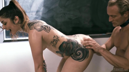 Бывшая ученица мистера Харрисона собирает класс на общую встречу и сейчас, поздно вечером, она в кабинете вместе со школьным учителем наедине, но не для того, чтобы просто удивляться какое тут все старое и не изменилось ни капли, а для того, чтобы дать последний шанс проявить качества самца: давным-давно, когда ловелас трахал всех восемнадцатилетних девчонок, именно эта, почему-то, была не в его вкусе. Со временем многое изменилось, добавилась женская энергия, куча татуировок на теле и теперь красотка после секса ставит оценку "четыре с минусом" и уходит победительницей в споре, которого никогда не существовало. [PureTaboo] Vanessa Vega - Past His Prime.