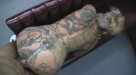 Прожженная потаскушка, многое повидавшая на своем веку, сохранила неистовую страсть. Не верите? Тогда вам стоит посмотреть данное видео и убедиться самим. С особым жаром наяривает татуированная мадам толстенный член, преданно смотря в глаза молодого любовника, а после насаживается на защищенный резинкой фаллос. Хуй, вонзающийся между пирсингованных половых губ, доставляет ебущимся немало удовольствия, но самый смак начинает тогда, когда милф встает рачком - появляется ощущение, как будто секс выходит на новый уровень (накатывается вторая волна удовольствия, еще сильнее первой, позволяя любовникам испытать мощный оргазм).